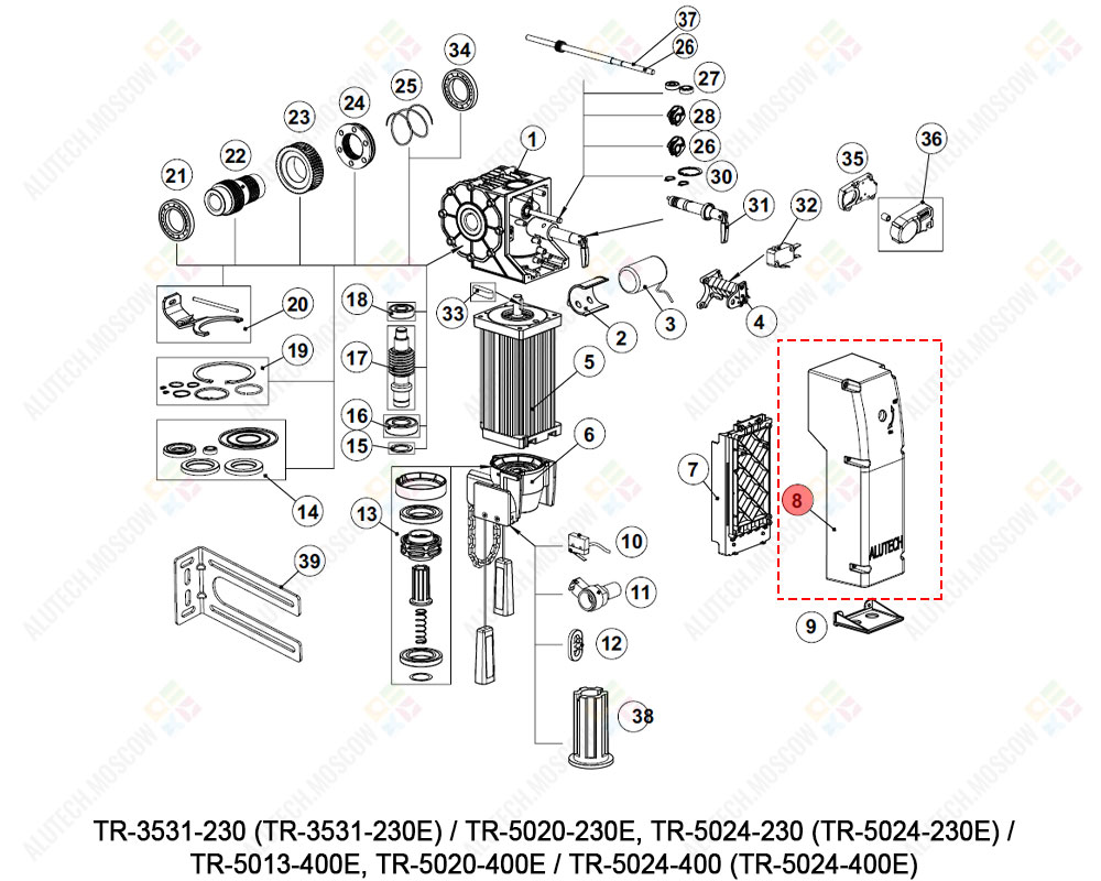 Кожух TR230.08-E, подходит для автоматики ALUTECH моделей: TR-3531-230 (TR-3531-230E), TR-5020-230E, TR-5024-230 (TR-5024-230E), TR-5013-400E, TR-5020-400E, TR-5024-400 (TR-5024-400E).