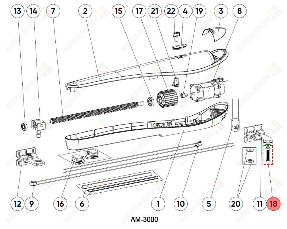 Винт осевой, AM5000.09, подходит для автоматики ALUTECH моделей: AM-3000, AM-5000.